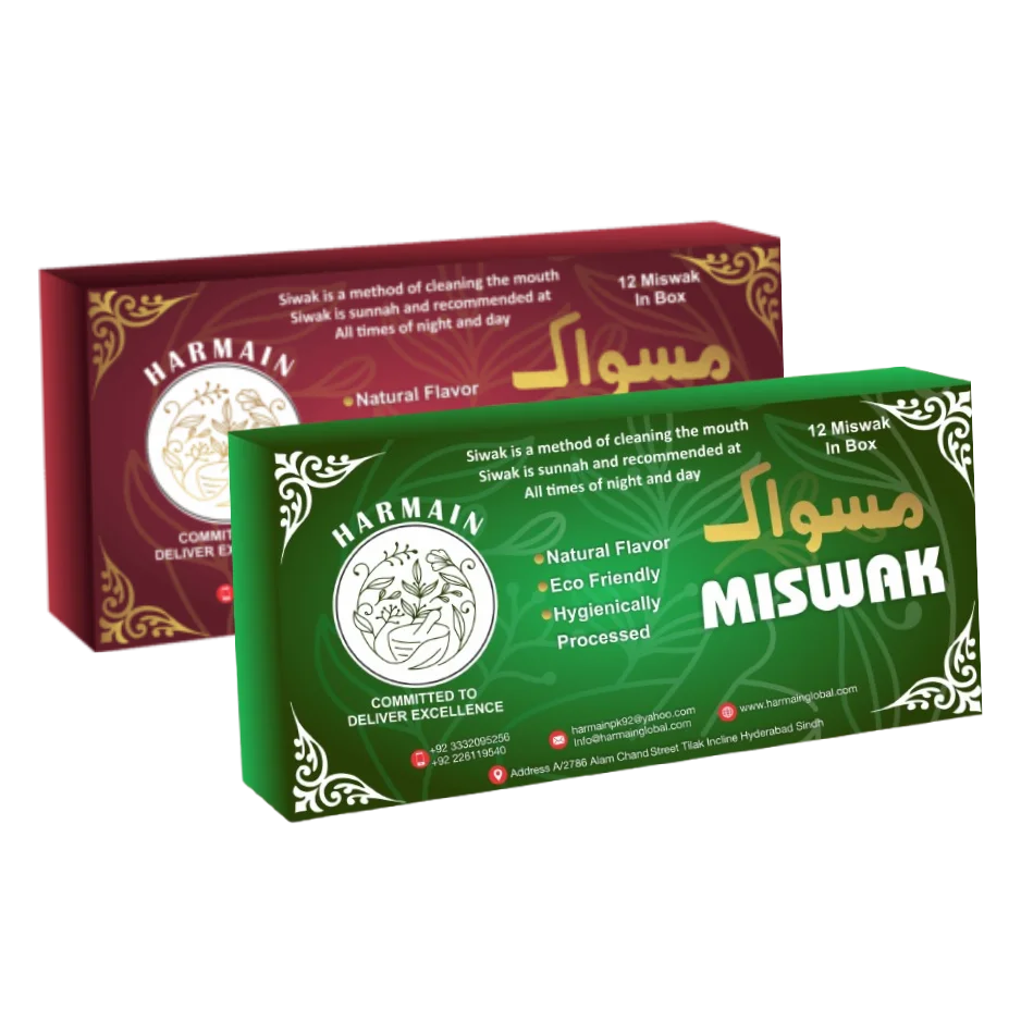 When you buy miswak sticks from Harmain Global, you receive authentic natural miswak sticks that combine the olive tree’s rich minerals with Salvadora persica’s natural fluoride and antibacterial compounds. As a leading miswak sticks bulk exporter, we provide premium variety packs ideal for retailers, wellness stores, and gift shops.
